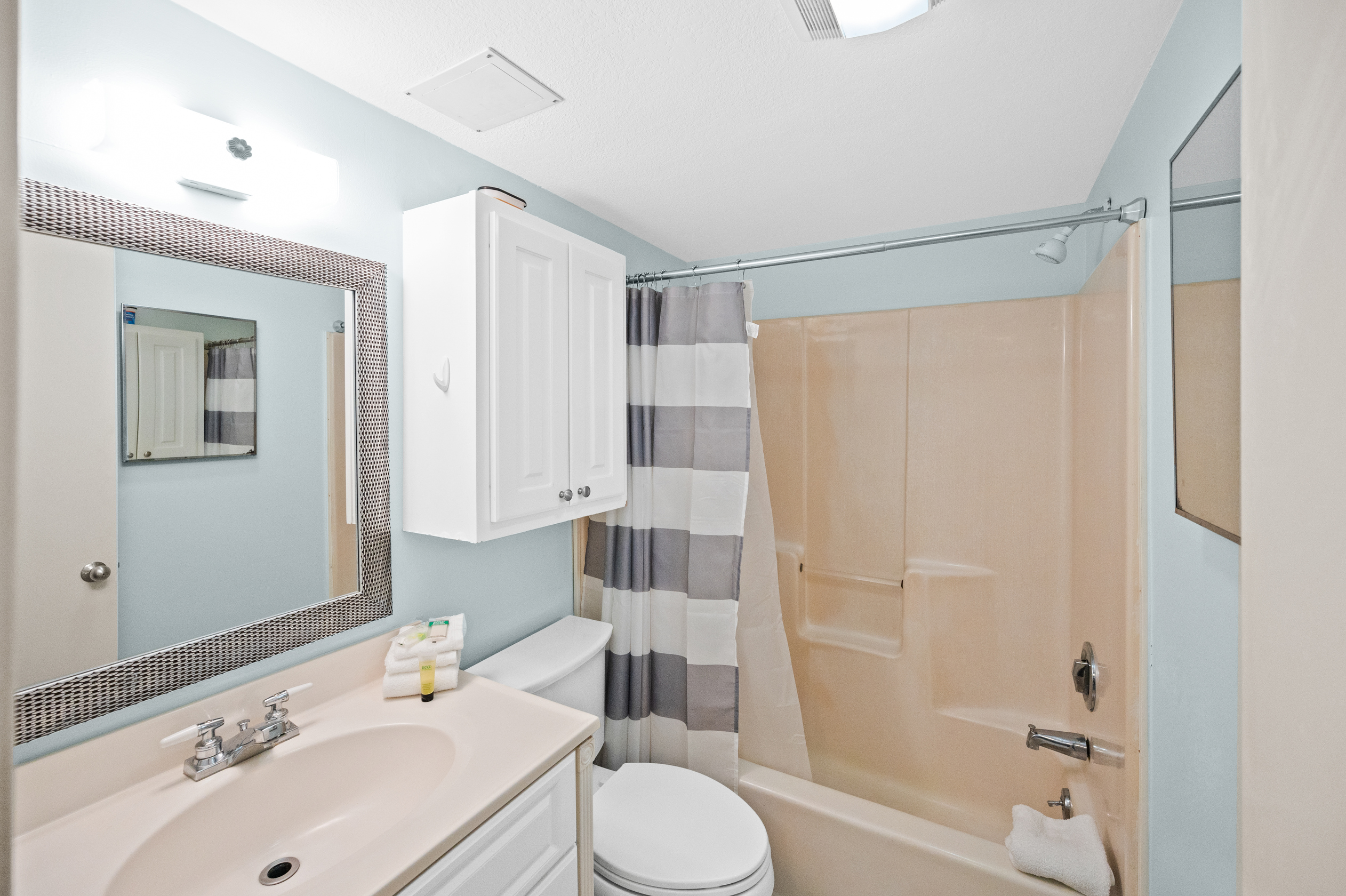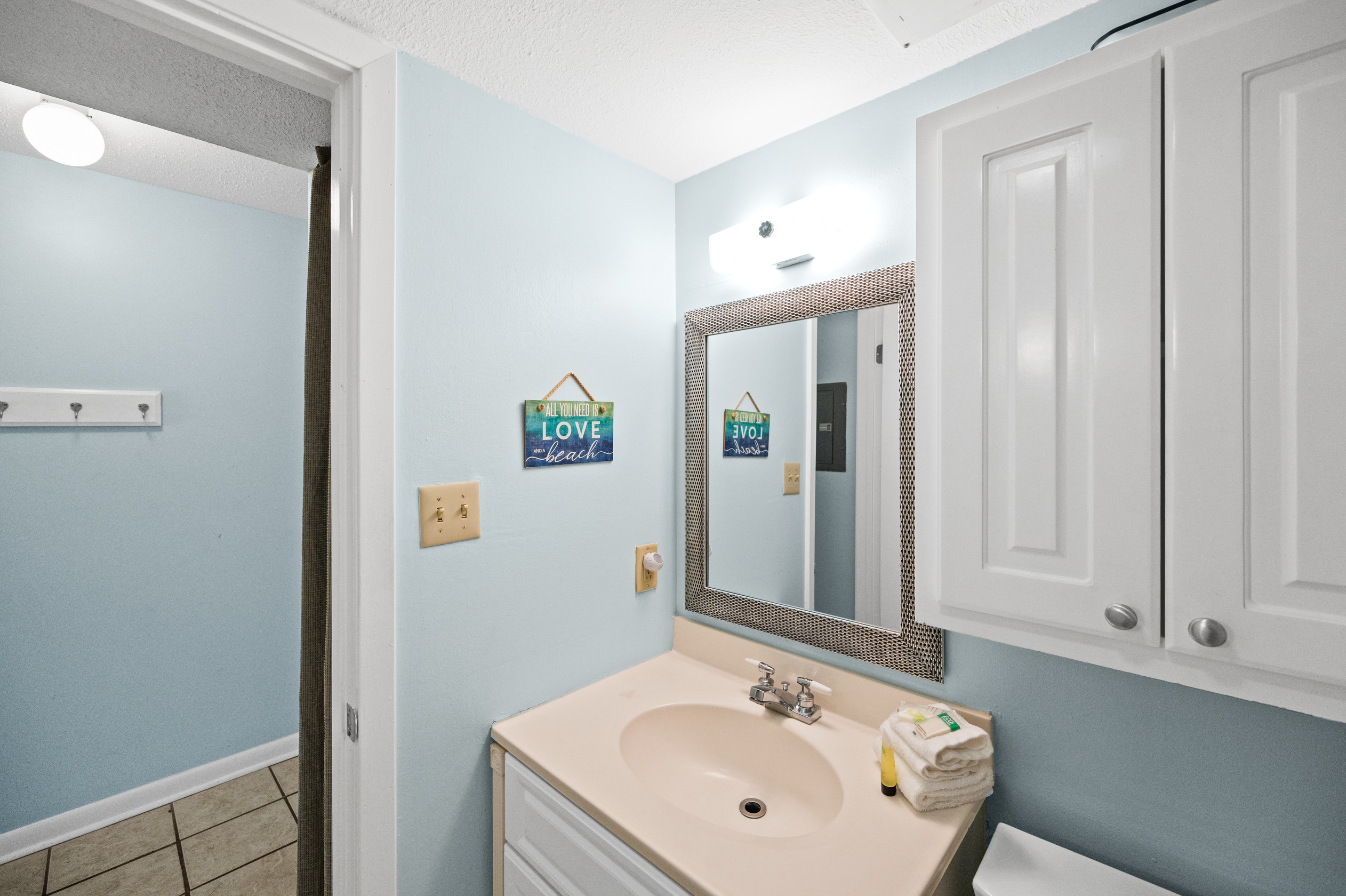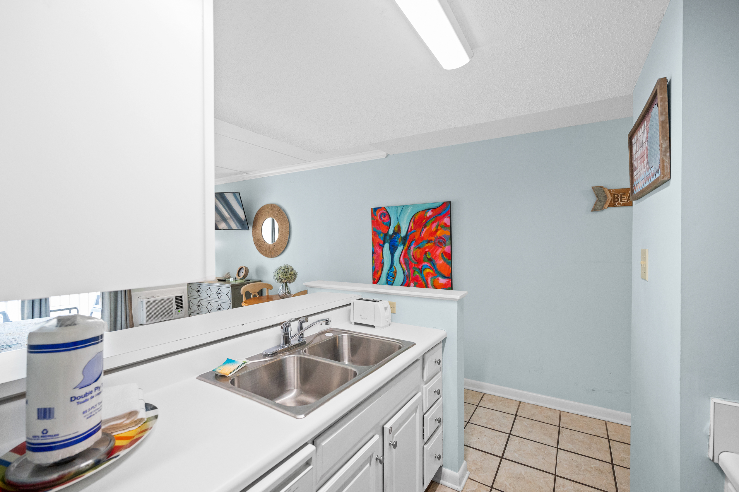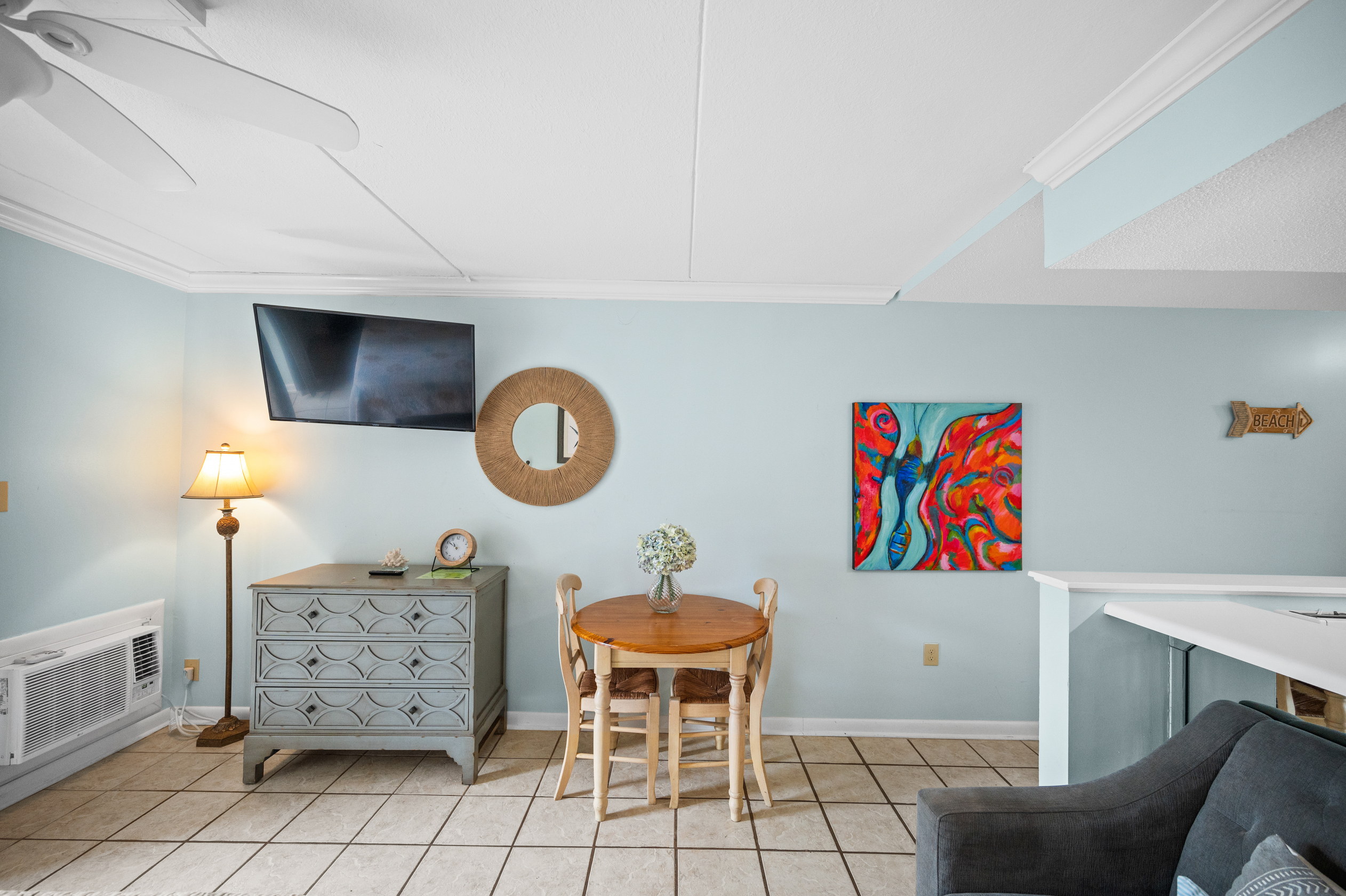 The fully equipped kitchen has everything you need to prepare delicious meals during your stay. Whether it's a quick breakfast, lunch or dinner after a day at the beach, this kitchen has all the essentials. Additionally, the condo features a full-sized washer and dryer, allowing you to conveniently keep your beachwear clean and fresh throughout your vacation.